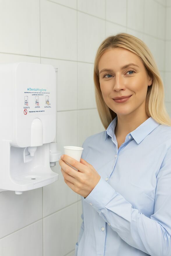 Nowość od DentalHygiene - dozownik płynu antybakteryjnego z kubeczkami do płukania i higieny jamy ustnej - gratis*Czy chcesz zapewnić swoim klientom i pracownikom ochronę zdrowia, całodzienną świeżość i dobre samopoczucie, zmniejszyć absencje w pracy?