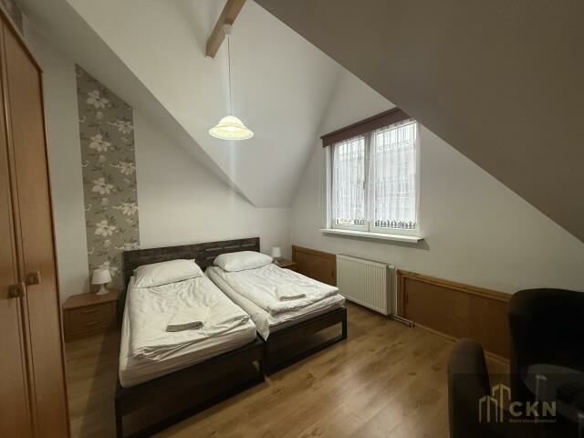 Apartament rozłożony jest na dwóch kondygnacjach. Na parterze znajdziesz przestronny salon, oddzielną kuchnię oraz dużą łazienkę. Piętro mieści dwie przestronne sypialnie oraz dodatkową łazienkę, co sprawia, że mieszkanie idealnie nadaje się zarówno do zamieszkania na stałe, jak i jako wynajem krótkoterminowy. Warto dodać, że apartament cieszy się doskonałą opinią wśród turystów, co czyni go znakomitą inwestycją przynoszącą regularne dochody.